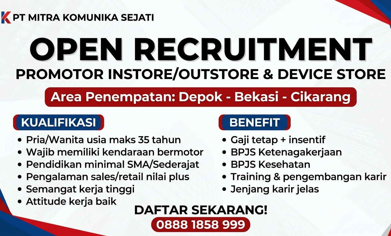 Kami adalah perusahaan retail terpercaya yang bergerak di bidang distribusi perangkat elektronik dan gadget. Dengan pengalaman bertahun-tahun, kami telah memiliki jaringan luas di wilayah Jabodetabek, termasuk Depok, Bekasi, dan Cikarang. Saat ini kami sedang berkembang pesat dan membuka peluang karir bagi promotor yang bersemangat.